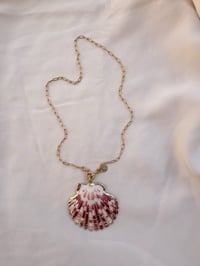 Collier chaîne plaquée or haute résistance, et pendentif en coquillage véritable, serti d'or liquide.